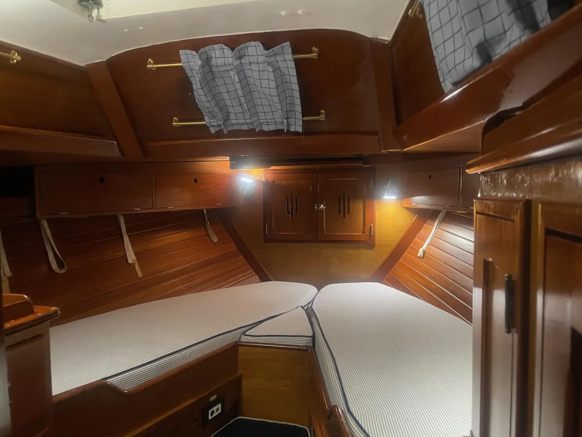 Step aboard and discover the impeccably crafted interiors that made the Bermuda 40 a paragon of luxury cruising yachts. From the warm teak accents to the classic layouts, these photos showcase masterful workmanship.